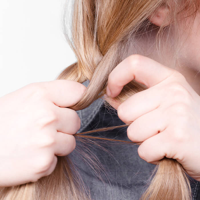 Split one side into three strands, then begin creating your fishtail braid.
